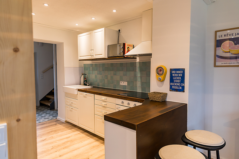 Erdgeschoss: Küche, Wohnzimmer mit Schlafcouch für 1-2 Personen, Essbereich, kleines Bad