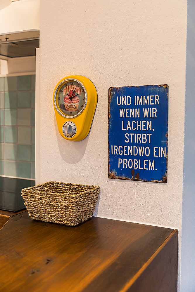 Küche mit den üblichen Küchenutensilien, außerdem Toaster, Wasserkocher, Kaffeemaschine (Filter)